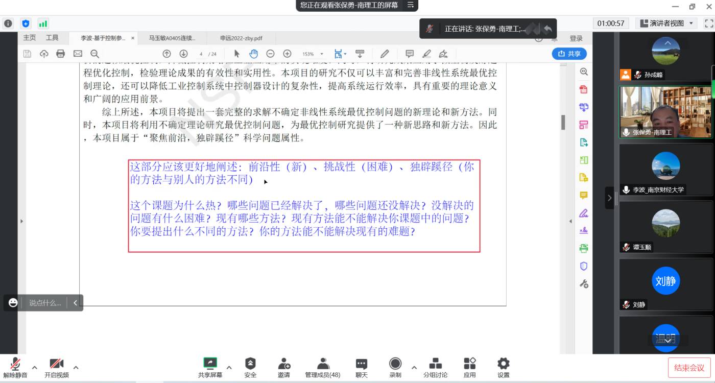 12月16日下午,应公司邀请,南京理工大学张保勇教授在线(腾讯会议)作了国家自科基金项目申报辅导讲座。讲座由公司副经理孙成峰主持,公司自科基金申报教师及部分其他院教师聆听了讲座。