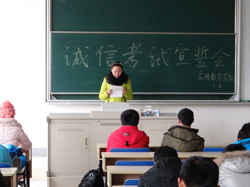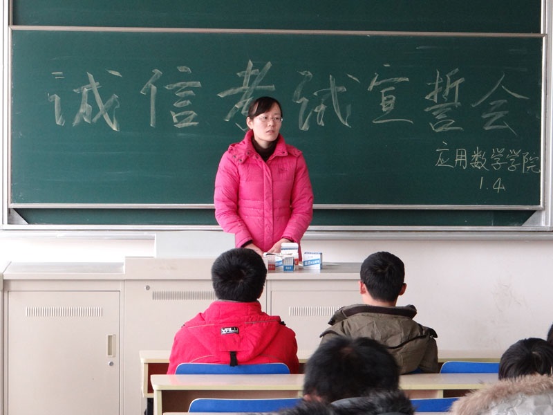 2013年1月4日上午9时至10时,云顶国际yd222线路检测中心于云顶国际yd222线路检测中心仙林校区专四114教室召开了2011级诚信考试宣誓会。云顶国际yd222线路检测中心团总支副书记朱辰婕同学主持了会议。云顶国际yd222线路检测中心团总支书记龚莉红老师,辅导员张文文老师以及云顶国际yd222线路检测中心全体大二员工参加了此次会议。