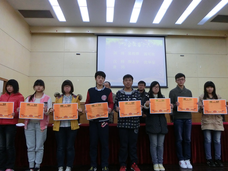 在颁奖的过程中,一些员工代表也上台谈了自己的一些经验和亲身感受。首先,国家奖学金获得者赵文杰同学发言,谈了自己如何获得奖学金的经历,大一时在校舞蹈团的学习生活让他学会了坚持不懈与团队合作精神,大四即将毕业,他会为梦想继续飞翔。在表彰“军训优秀个人代表”时,顾哲煜同学感谢了辅导员、学长学姐和教官的关心与教导,军训让我们增强了责任感和自信心,磨练了我们的意志,军训虽然已经过去,但它留给我们的品质会伴随我们书写无悔青春。随后,奖学金获得者贲佳雯同学发表了自己的获奖感言,让我们知道了在学好专业知识的同时还要学会待人接物的处事方式,要不断向周围的人学习来提升自己,并建议大一新生不能逃课而要抽空多读书。接着,先进班级代表王亚宁同学发言,他认为班级优秀的关键在于学习氛围要浓厚,希望大一能保持严肃认真的学习态度,不畏艰险,一飞冲天。然后,社会实践优秀个人代表陈航同学讲述了自己暑假在印度宣传亚青会的亲身历程,让大家对这样的经历产生了浓厚的兴趣,并增强了同学们的民族荣誉感和使命感。其次,运动会优秀个人代表张浩哲谈了自己对于个人天赋的理解,要善于发现自己的兴趣与特长。之后,团总支优秀代表孟幻表达了自己对团队中每一位队员的感谢,谈了参与各项工作的意义,希望团总支成员能继续积极配合为公司做出更大贡献。紧接着,员工会优秀个人代表颜志宇同学发言,总结了在员工会一年的各项工作,强调了责任感与合作精神的重要,也承认了之前工作中的一些不足,并对院员工会的未来充满信心。最后,优秀志愿者代表杨迎迎对过去一年的志愿者活动表达了满心的怀念,感谢每位志愿者的配合并号召大家积极参加各项活动。