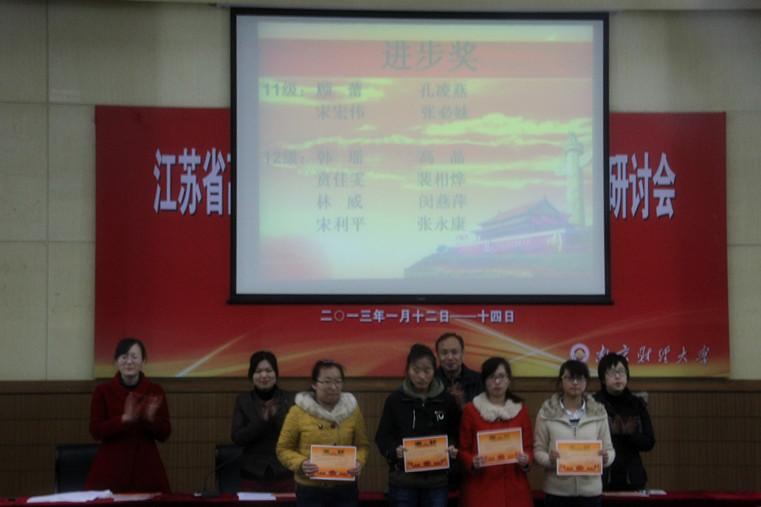 本次会议由团总支书记龚莉红老师主持。首先,由龚莉红老师宣布了关于此次表彰大会的相关议程,即由出席的各位院领导和老师对奖学金预申请成功、学习进步、四六级成绩优异、义务献血、院飞信平台工作小组和在迎新晚会上付出辛劳的同学们颁奖和表彰。同时,1101班的同学因为百分百的四级通过率而拿到了此次会议唯一的一个集体荣誉。