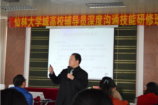 此次培训旨在传授辅导员基本的心理沟通技巧和判断心理倾向的方法,提高辅导员处理员工心理问题的能力,同时也为各校辅导员提供了一个切磋技艺的平台。整个研修班为期三天,共分三个环节。前两天的培训活动由南京大学心理教育与研究中心副主任费俊峰老师主讲。费老师生动幽默的讲课风格和互动式的授课方式,充分调动了学员们的积极性,学员们在分组活动中既可以相互学习又锻炼了沟通技巧。15日上午,由南京师范大学的周红教授给大家做了题为“赢在沟通”的讲座。周教授将讲座内容与亲身经历充分融合,带领公司剖析自己内心世界,其深厚的理论功底和深刻的实践感悟深深的打动了每一位学员的心。15日下午进行了分组讨论环节,各组成员在专职心理辅导老师的指导下分享了自己的辅导经验,提出了自己的辅导困惑。随后大家针对“网络成瘾”、“女生心理辅导”等问题展开集中讨论,各抒己见,由心理辅导老师予以剖析和点评。