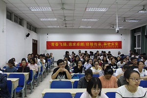 本次活动的主题是:青春飞扬,追求卓越;经验传承,展望未来。公司通过自荐、选拔出一批优秀的青年学子,到新生班级去分享自己的青春励志故事。杨曾同学学分绩点在年级名列前茅,他分享了自己独特的学习经验,亲切的话语,温馨的叮嘱,向新生们提出了大学学习的重要。丁宁同学以亲身经历为新生们打开数学建模的世界大门,鼓励新生们挑战自我,积极参加各种数模比赛。郑静同学就出国留学方面,给大家介绍了非常宝贵的经验,让新生们受益匪浅。陈楠同学讲述了自己暑假赴埃及进行叙利亚维护和平志愿活动的经历,鼓励同学们要积极参与社会实践活动,全方位地锻炼自我,在磨练中成长。