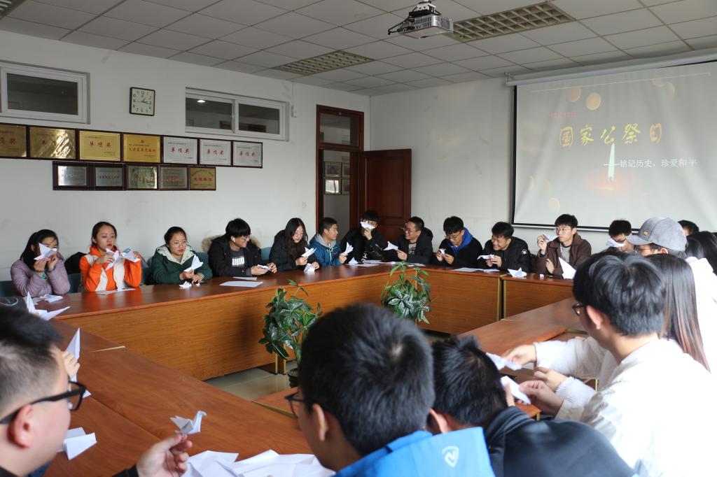 12月13日中午,云顶国际yd222线路检测中心在德业楼534会议室开展了以“铭记历史,珍爱和平”为主题的纪念南京大屠杀死难者国家公祭日系列活动。数院学子积极参与其中,观影了解历史,默哀悼念亡魂,动手制作和平鸽祈福,寄托哀思,倡导和平。