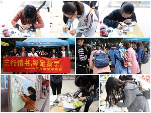 爱,只用三行字来表达,这便是“三行情书”。不论亲情、友情或是爱情,都可以用这三行情书来表达。本次活动与传统的三行情诗不同,参赛作品要求用数学的语言来表现。活动吸引了各院员工参赛。比赛现场,参赛同学挥毫泼墨,文采飞扬,在精美的明信片上写上数学版的情诗,有的表达对情侣的告白,有的抒发对朋友的祝福、对父母的牵挂以及对往事的追忆。精彩诗句获得了现场观众阵阵掌声,如“你是π,永远只能接近,去无法达到。”“微分了忧伤,积分了快乐,我要和你追随黎曼最初的梦想”。 经过评比,最终陈梦岩等10名同学获得“十佳作品”奖。