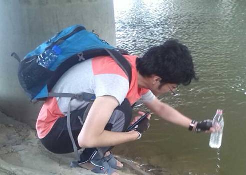 不顾路途遥远,顶着炎炎夏日,队员们克服了路面状况不好、轮胎多次爆胎、身体被晒伤的困难,在保证每个人都安全的前提下,通过对太湖的亲手接触,实地取材,取得太湖周边区域的水样,采到水后当即便做了浮游生物检测。通过了解水生生物的变化,水中泥沙、水的温度,大家对水的状况有了第一步的了解。