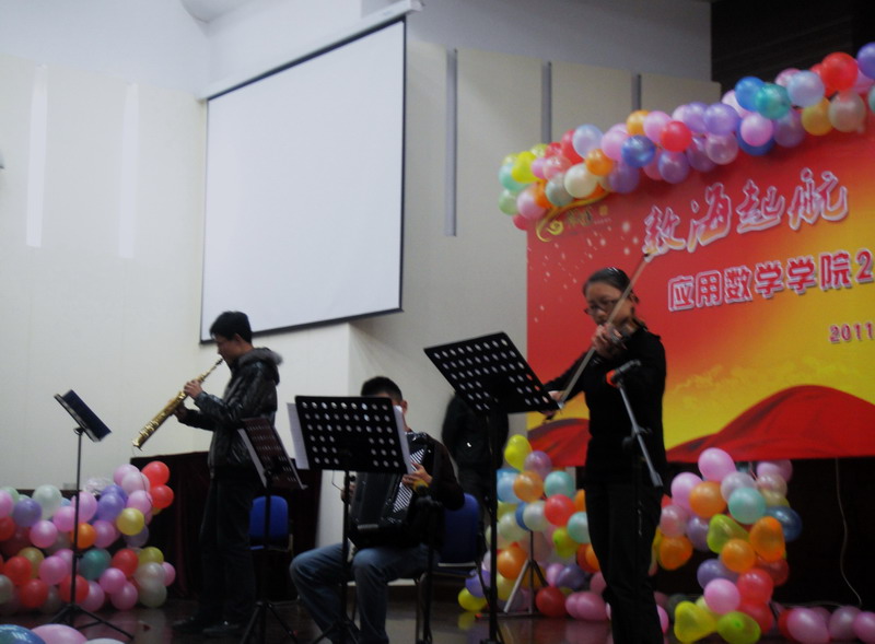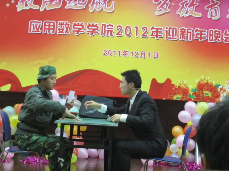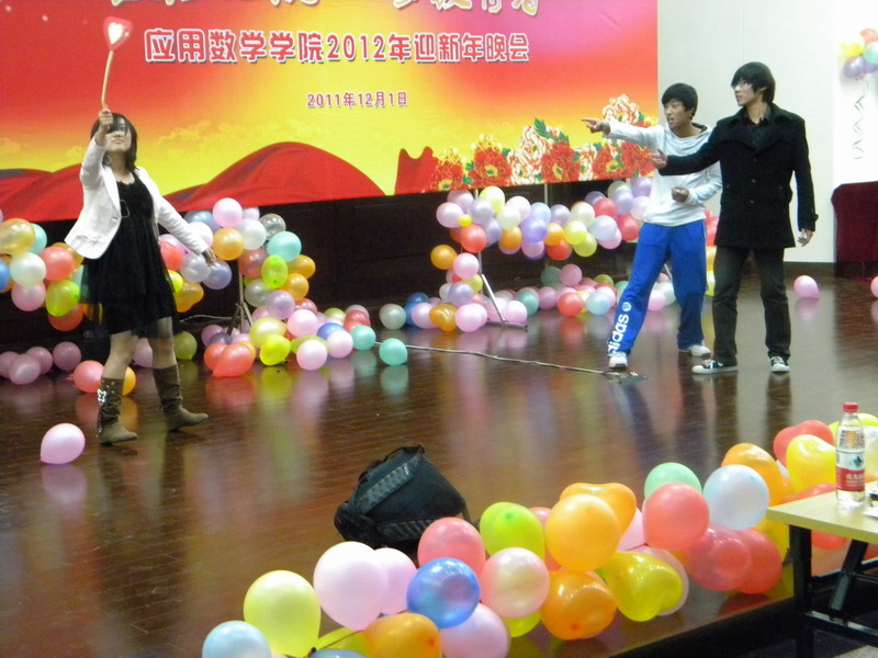 于是在2011年12月1日,终于迎来了我们进入南财以来的第一个迎新年晚会。整个会场,从舞台布置,到灯光,音响的控制,都是由我们自己完成的。晚上六点,晚会正式开始。