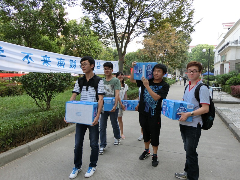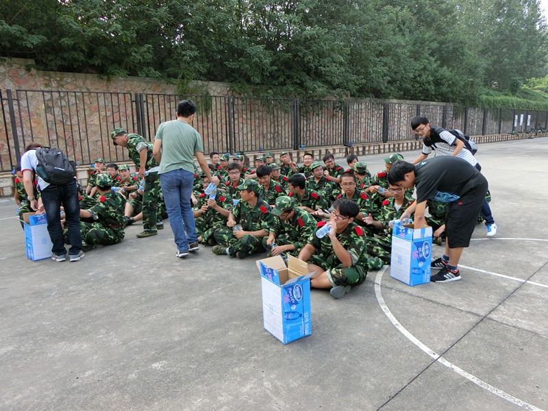 当公司员工会的同学们搬着矿泉水走进军训场地时,大一的学弟学妹们露出了欢乐的笑脸,坐在地上的他们在接过矿泉水的同时也在一直说着谢谢学长学姐。有的孩子拿过水大口大口地喝了起来,有的孩子只是喝了一小口,就满足地擦了擦嘴。他们左右讨论着,前后说笑着,俨然暂时忘却了军训的疲惫。公司员工会副主席沈桐还鼓励同学们坚持军训,客观对待老员工活中可能出现的挫折,并努力去寻找更广阔的天空。