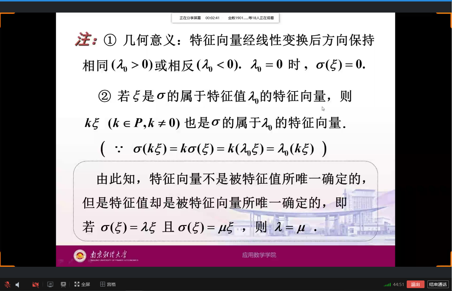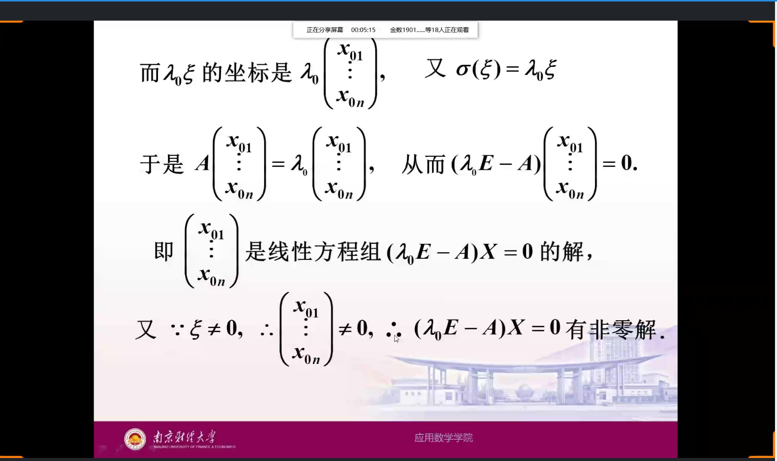 本次知识点讲解活动涵盖了19级三门基础专业课,招募的三位讲师也是在自己负责讲解的学科上名列前茅。首先是数学1801的卢艳玲学姐,连续三年获得学习优秀一等奖学金,她为同学们讲解了数学分析中无穷级数的相关难点证明,思路清晰,步骤详细,加上耐心的讲解,学弟学妹们听讲十分认真,牢牢把握学习机会。接着是金数1801的潘爱玲学姐,在过去的两年中也多次获得学习优秀奖学金,她讲解的内容是概率论中必考的事件之间的联系性,结合具体实例,由浅入深,为学弟学妹们答疑解惑。最后是由金数1802的班长熊鑫学长为学弟学妹们带来有关于高等代数中对数学基础非常重要的特征值与特征向量的讲解,讲解过程中详细分享了自己的学习方法,让学弟学妹们更好地掌握这门课的学习重点。每位讲师讲解的学科都是自己擅长的领域,根据自己的学习经验为同学们细心讲解例题,梳理知识点,另大一学弟学妹们逐步消解疑惑,也对接下来的迎考复习做到了清晰规划,。
