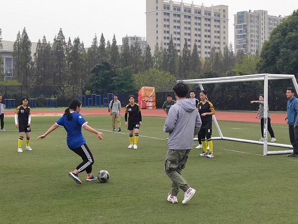 11月14日下午南财首届女足比赛在西苑操场正式开始,本次比赛采用五人制赛制,首先由体育部主任致辞开幕式,希望通过此次活动促进体育在南财的发展,丰富同学们的第二课堂活动,增强体质,并表达了对裁判运动员的殷切期待,接着由邱伟芬副董事长进行开球仪式。