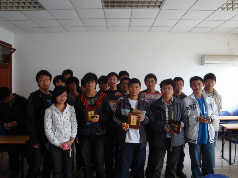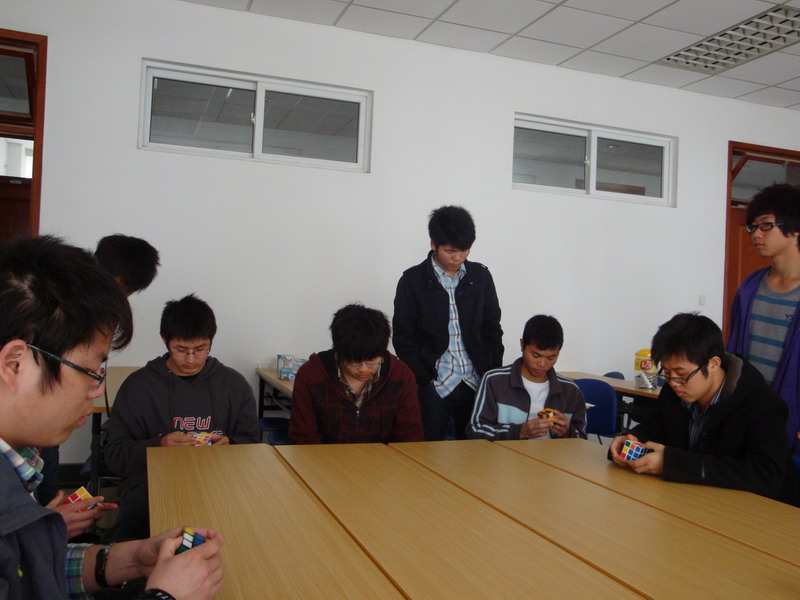 如果说趣味答题显示的是数学的趣味性的话,那么魔方大赛则更多的显示了数学娱乐的刺激与紧张。魔方大赛分为两轮,第一轮决出前五名,第二轮决出前三名。随着哨声响起,秒表开始跳动,偌大的房间里,只听见魔方转动的吱嘎声。参赛选手都集中了主意力,探索着复原的途径,连周围观看的同学都摒足了呼吸,紧张到极点。随着一个个魔方的复原,所有人都松了一口气。最后决出了前三名,比赛结束。虽然比赛进行时间不长,但也让所有人感受到了数学娱乐的紧张与刺激,调动了同学们对数学的兴趣。