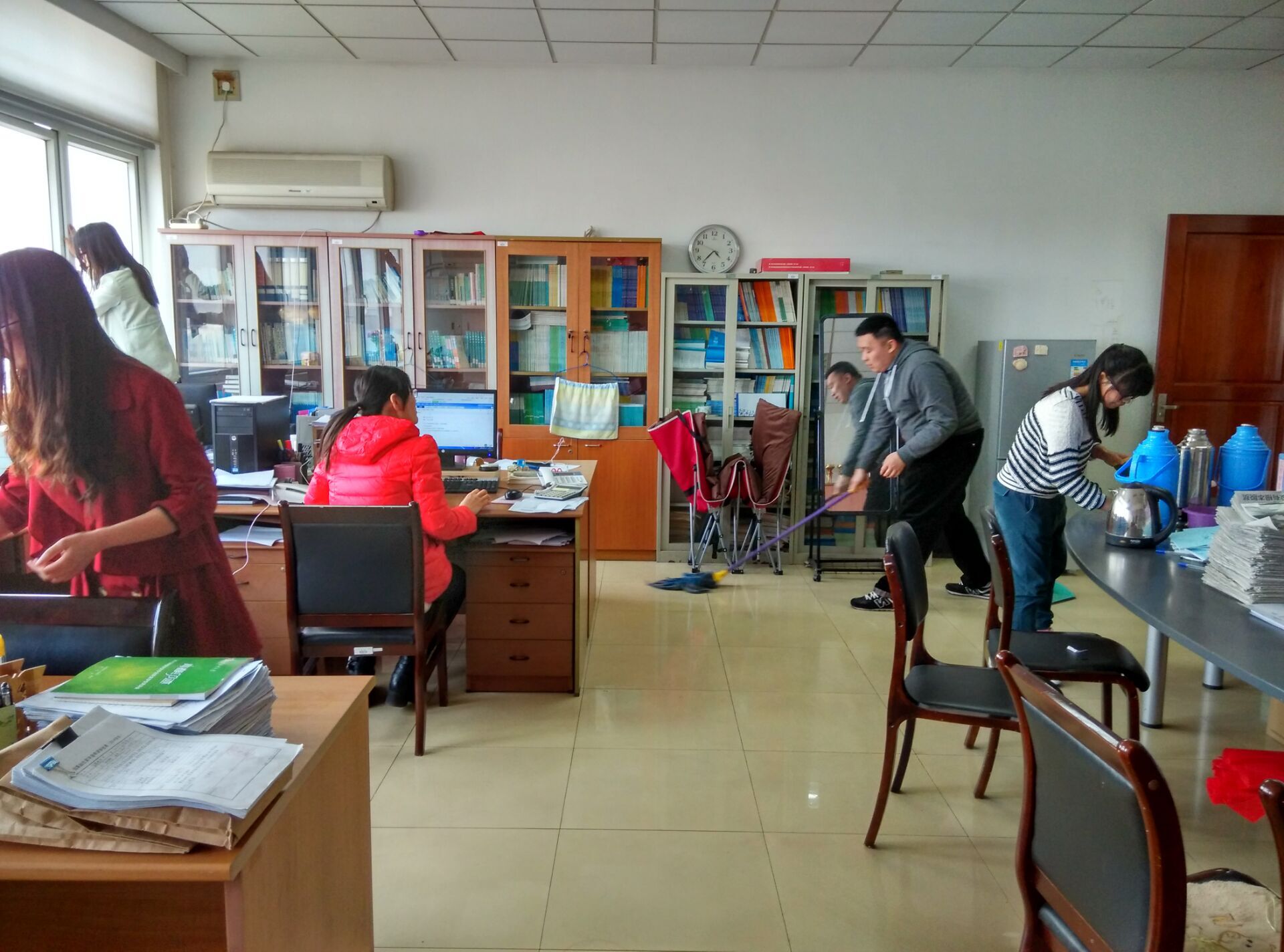 3月25日下午,全体13级毕业生拿起扫帚﹑拖把和抹布来到各个老师的各个办公室,认真打扫,仔细清理。从室内到室外﹑从地面到墙面﹑从门窗到桌椅,不留下一个污点。整个活动同学们热情高涨,在精心打扫之后,教师的办公室焕然一新。活动结束之后,老师们向全体同学表达了感谢同时送上祝福,希望他们在今后的工作岗位上戒骄戒躁,不怕困难,在新的工作岗位上获得新的成就。