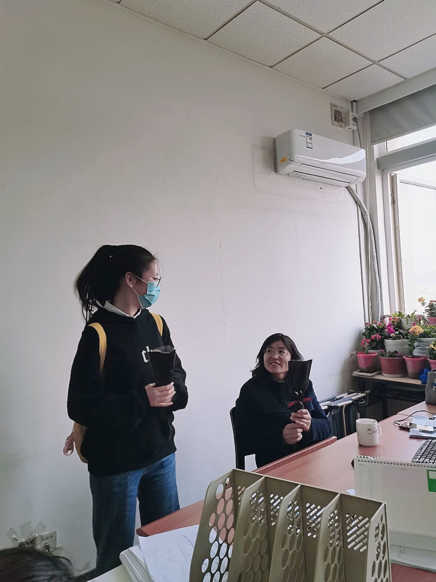 娇艳欲滴的玫瑰花被一层轻薄的白纱小心翼翼地包裹着,一圈红黄相间的细丝带系于下端。花束虽然小巧,却别致精美,这是同学们为老师们细心装扮的“一朵朵鲜花”。和鲜花在一起的还有一张张饱含着员工心意的粉红色贺卡,象征着同学对老师们的最纯粹、最美好的祝愿。当同学们将一朵朵准备好的的玫瑰花送到每位女老师手中时,老师们的脸上纷纷绽开了欣慰的笑容,她们有的亲切地拥抱了献花的同学,有的和同学们深切攀谈,有的和同学们合影留念…盛开的鲜花和灿烂的笑脸交相辉映,这是同学们认为的老师们最美的样子。