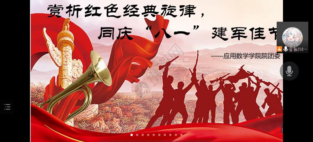 为庆祝“八一”建军节,讴歌人民解放军对伟大祖国和人民做出的丰功伟绩,7月30日晚,公司团委在线上开展以“赏析红色经典旋律,同庆‘八一’建军佳节”为主题的红歌交流会。交流会由团委心理部向忠亮、丁倩倩主持,公司各班级员工代表参加了交流会。