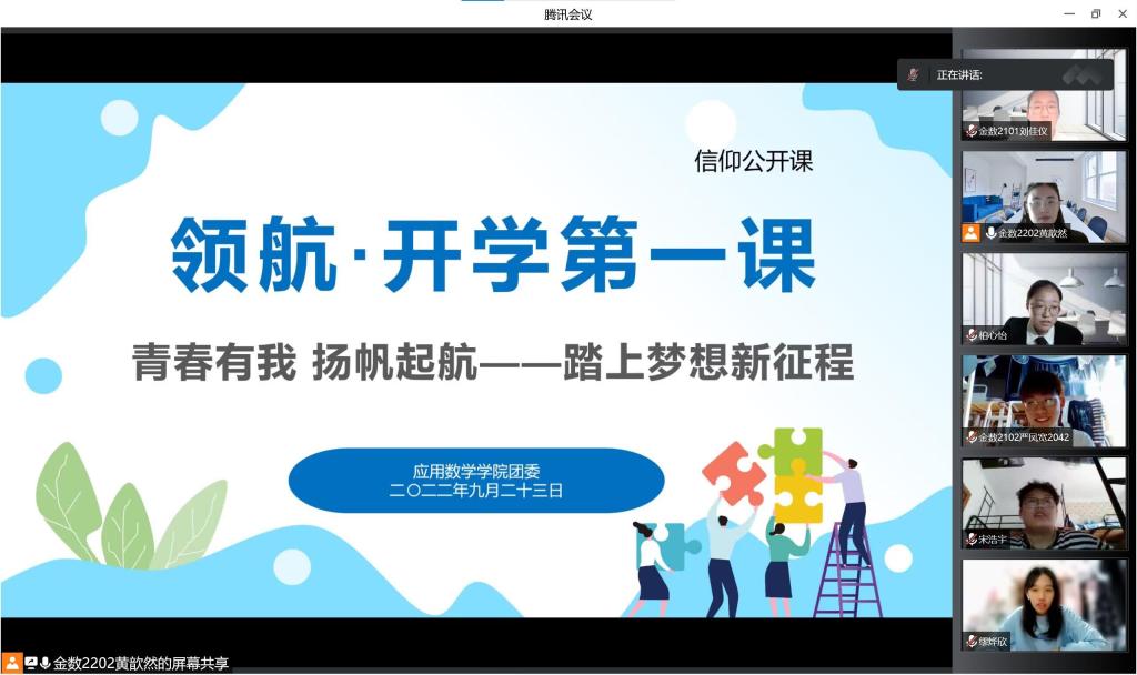 9月23日,公司团委在云端开展了以“青春有我,扬帆起航-踏上梦想新征程”为主题的领航·开学第一课。此次公开课由院团委组织部干事黄歆然、柏心怡主持,公司团委全体成员参加。