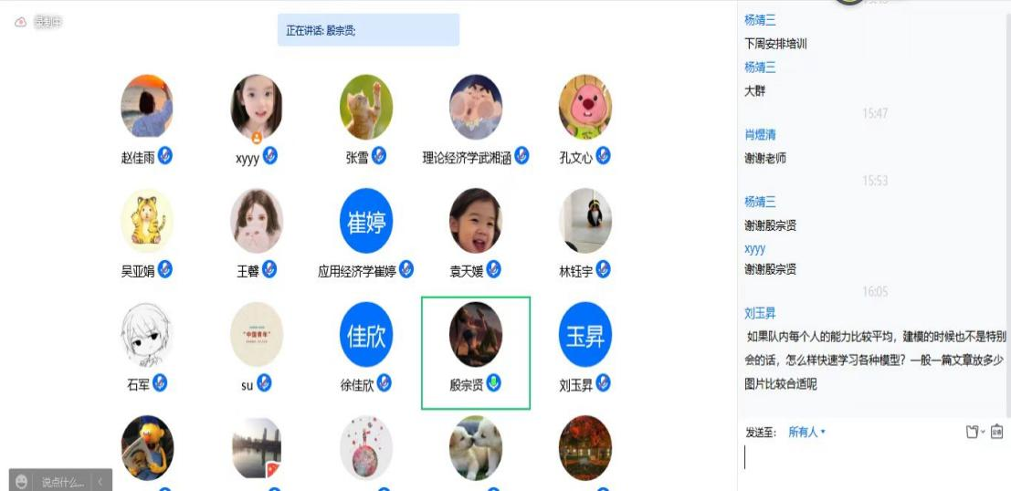 分享结束后,同学们针对自己对于数学建模竞赛存在的问题进行了提问并展开热烈讨论,杨老师和两位研究生做了了耐心解答。