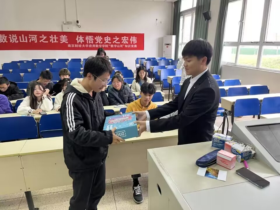 在耿义豪同学的带领下,现场同学们通过抢答的方式进行答题。比赛过程中同学们你追我赶,互不相让,数学2201张雯俊同学不断举手抢答,他凭借着对历史事件的了解与人文知识的储备,连续回答了耿义豪同学抛出的问题,赢得了现场同学们的掌声,大家的情绪也被现场紧张而又热烈的氛围所感染。限时作答考验着参赛者对关于祖国各地自然与人文景观知识的储备能力;附于明信片中的景观图片,让参赛者在“赛”中更能感受到祖国山河之壮美。最后,经过激烈角逐,综合现场表现与累计积分,数学2201张雯俊同学获得了此次比赛的一等奖。