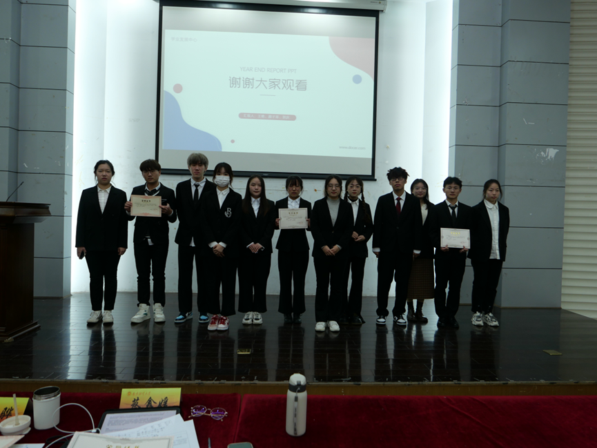 主席团做工作总结。蔡鑫媛代表主席团总结了一学期以来员工会的工作情况,并介绍下学期的工作安排。她肯定了本学期活动开展的高创新度和高参与度,也分析指出了工作中存在的不足。各中心负责人作述职报告。员工会各中心负责人向大会和主席团作述职报告,他们结合员工会重点工作和本部门职能,系统回顾了前一个阶段的工作,总结经验,补足短板。表彰颁奖。大会对优秀志愿者和工作中心进行表彰。对外交流中心李天妍、素质拓展中心袁飞、综合事务中心卜卓远、媒体融创中心何晓雅、服务维权中心肖智洋、学业发展中心丁越获优秀志愿者称号;服务维权中心、综合事务中心、媒体融创中心分别荣获述职第一、第二和第三名;对外交流中心获最具吸引力中心称号,学业发展中心获最具创新性中心称号,素质拓展中心获最具活跃力中心称号。
