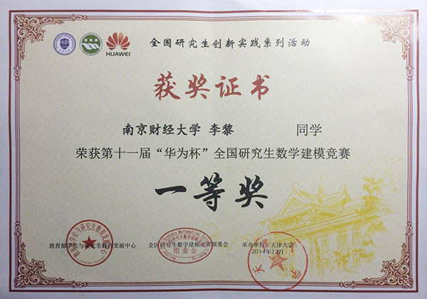 附录:公司学子参加2014年全国研究生数学建模竞赛获奖名单