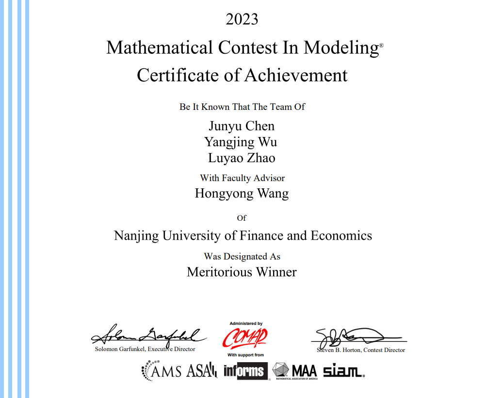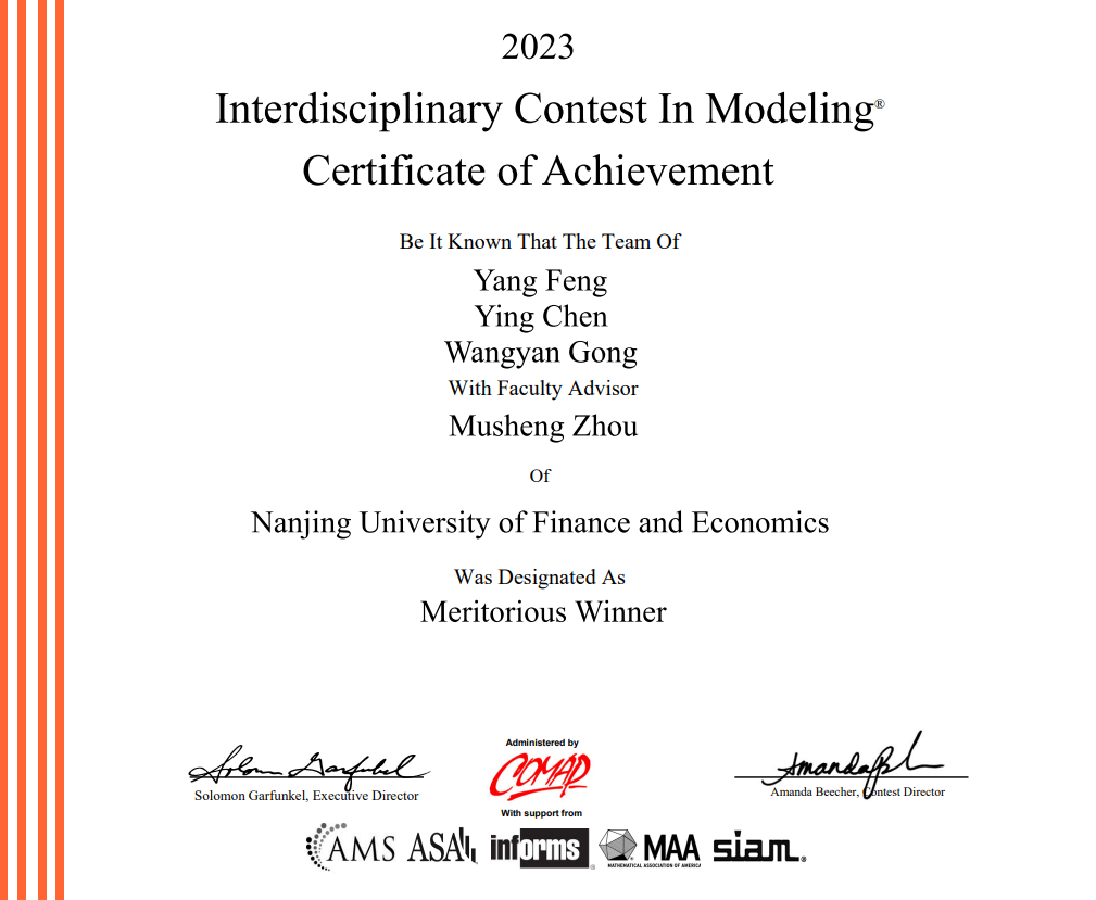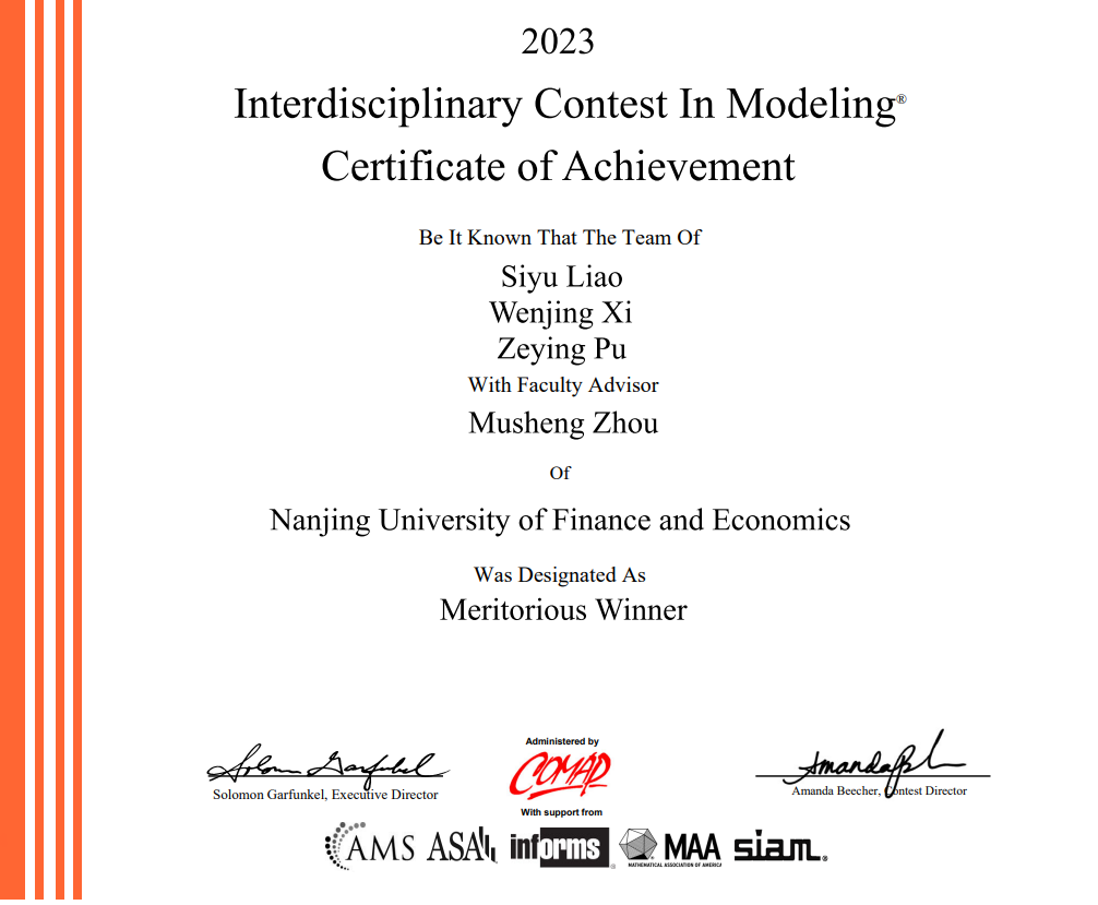 附录:公司学子参加2023年美国老员工数学建模竞赛获奖名单: