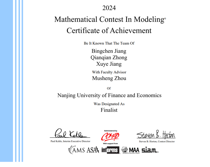 附录:公司学子参加2024年美国老员工数学建模竞赛获奖名单: