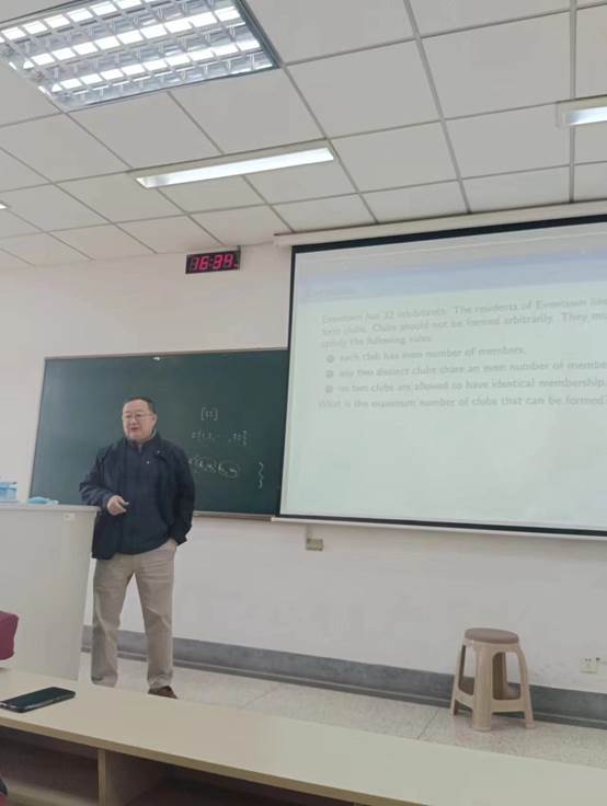 在讲座中,向青教授系统地介绍了如何将高阶关联矩阵与线性代数技巧应用于组合问题的研究。特别是通过讨论高阶关联矩阵的秩,给出了极值集论中重要的Ray-Chaudhuri-Wilson定理的证明。讲座介绍后,向教授回答了师生们提出的问题。参会师生普遍认为此次讲座的内容对今后的科研工作具有很大的启发性。