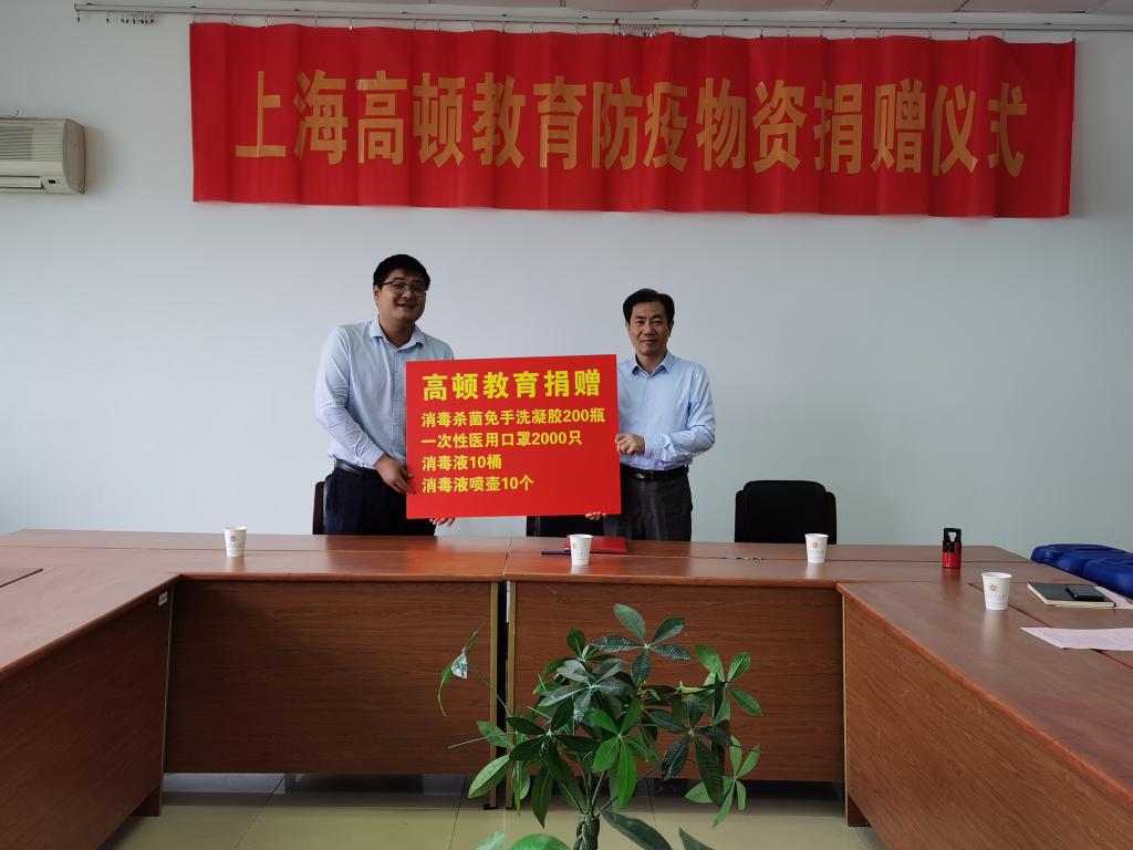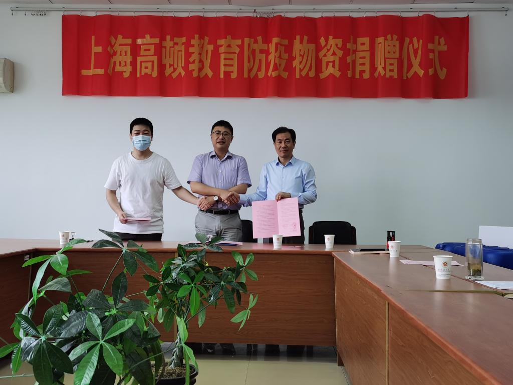 6月18日上午,高顿教育向公司捐赠一次性口罩、免洗手消毒凝胶、84消毒液等防疫物资,捐赠仪式在仙林校区德业楼534会议室举行,高顿教育南京分公司总经理谢斌、市场经理何伟、市场主管房建兰,高顿教育高校事业部高级销售经理张美娟,校对外联络处副处长(主持工作)王立峰、副处长王冲,公司经理王宏勇等参加了捐赠仪式。仪式由公司党总支书记殷建新主持。
