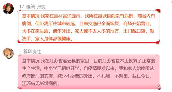 活动第二项,支部全体党员在支部QQ群中开展“群聊”,各自介绍住所地的防疫情况以及自己和家人的基本情况。