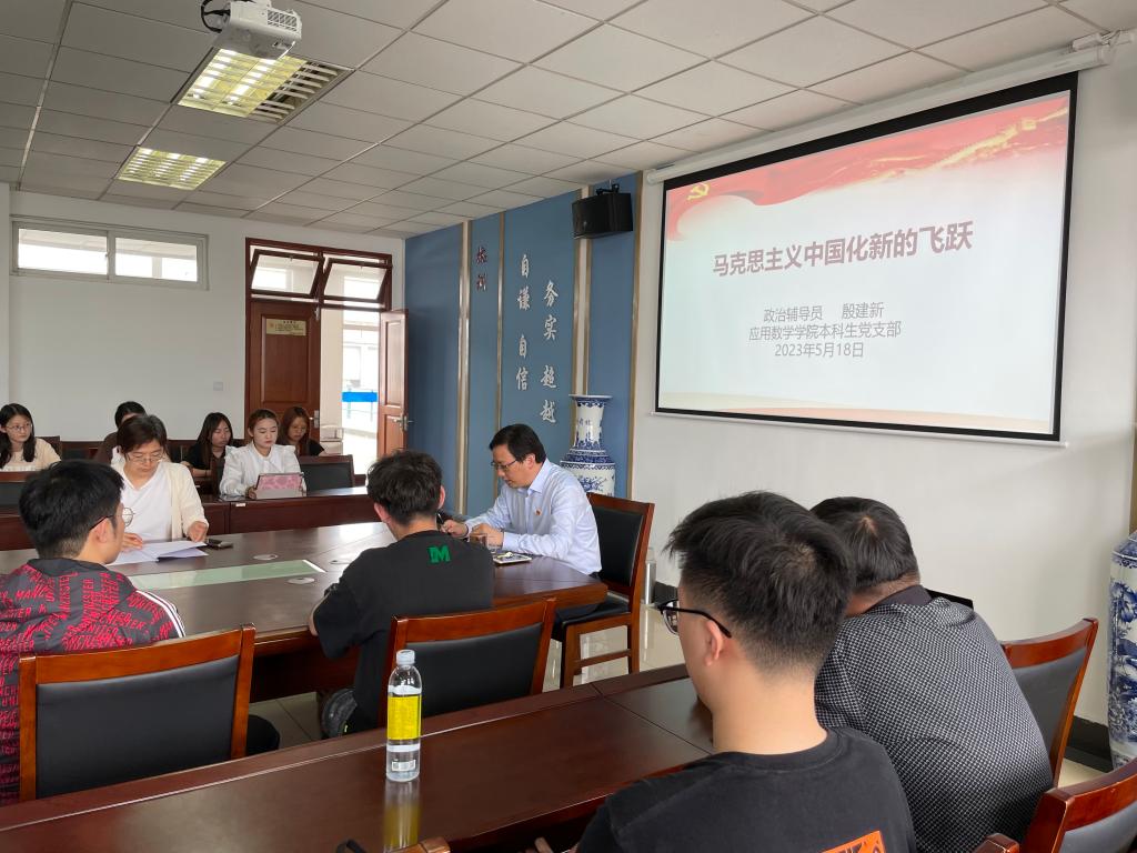 5月18日下午,公司党总支书记、本科生党支部政治辅导员殷建新在德业楼508会议室以“马克思主义中国化新的飞跃”为主题讲专题党课,本科生党支部全体党员参加。