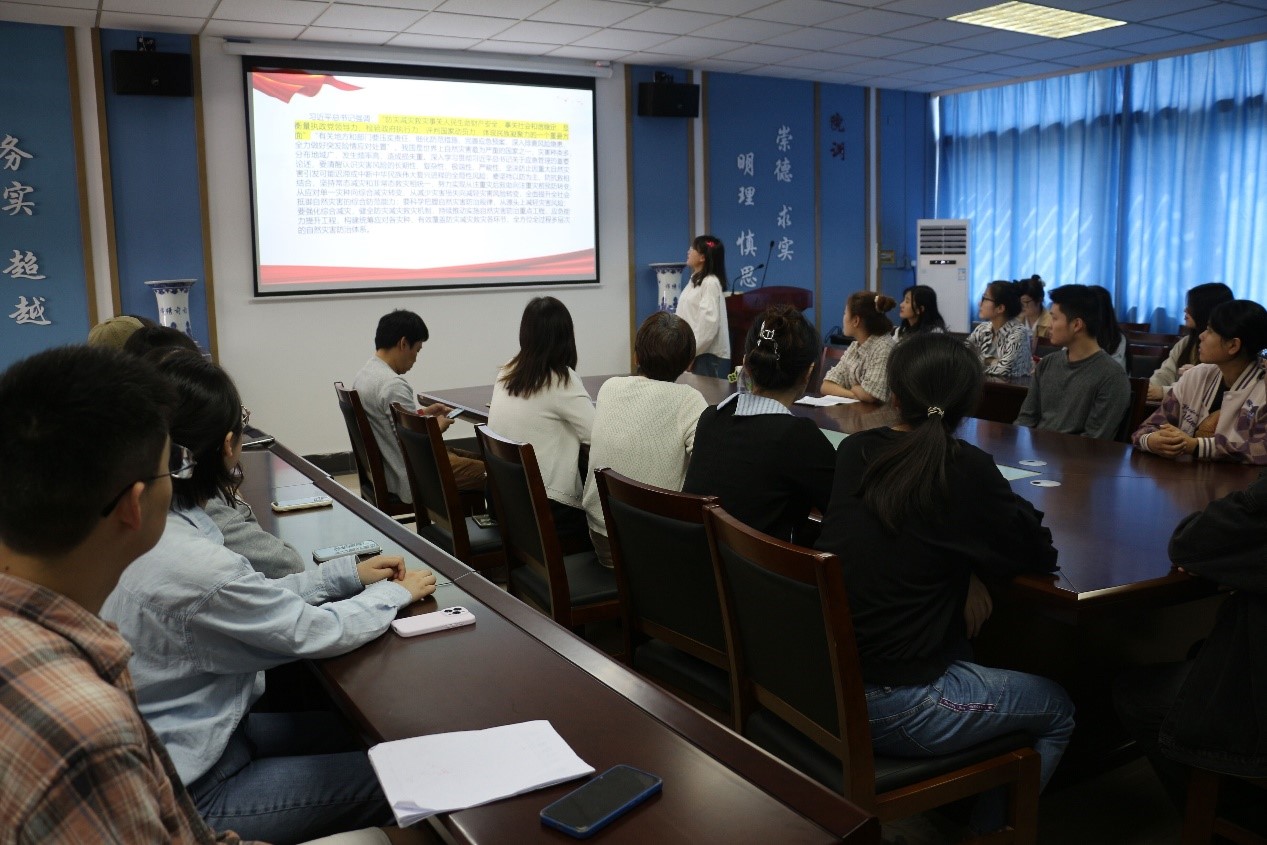 活动伊始,本科生党支部书记卢艳梅老师带领全体成员学习了习近平总书记关于防灾减灾救灾等应急管理工作的重要论述精神,强调广大党员同志要发挥模范带头作用,认真学习,不断提升相应能力。