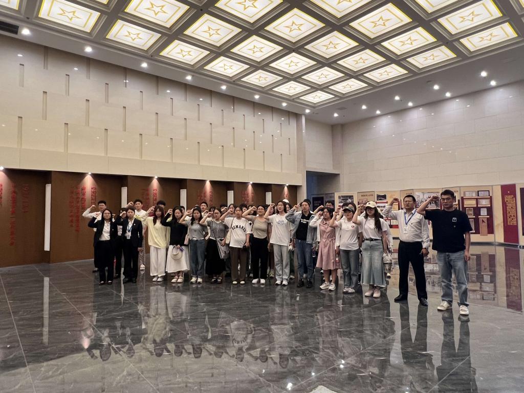 首先,全体党员来到南京江北新区红色广场。讲解员热情地接待了大家,并简要介绍了广场的基本情况和参观路线。红色广场作为江苏省及南京市红色主题教育基地以及党建廉政文化展示基地,以火车广场、初心广场雕塑群、红色文化展陈馆三部分组成,从空中俯瞰主体建筑呈“品”字形布局,对应曾在江北战斗过的王菏波同志“品重柱石”的精神。在馆内,大家依次参观了“两浦星火革命洪流”“疾风劲草 北岸屹立”“救亡烽火 坚持抗战”“激战三浦 解放南京”四大单元主题厅,详细回顾了南京工人运动和中国共产党组织的起源与发展历程,深刻地认识到江北地区在中国共产党历史、中国革命史以及中国工人运动史中所扮演的重要角色和做出的杰出贡献。随后,全体党员在展馆内的党旗前重温入党誓词。全体党员面向党旗,举起右拳,庄严宣誓,铿锵有力的誓言回荡在展馆内,激励着每一位党员不忘初心、牢记使命。