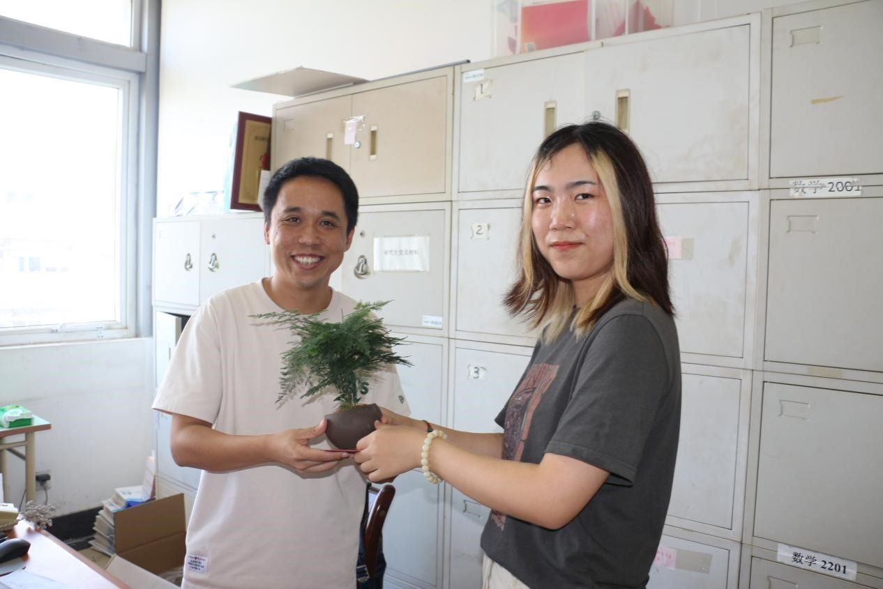 致敬师恩,桃李芬芳。9月9日上午,公司在仙林校区德业楼五楼举办了以“感恩教师节,再续师生情”为主题的教师节庆祝活动。员工会服务维权中心的同学代表全体员工向老师表达了感恩之情。活动中,同学们以数学符号为桥梁,写下一条条真挚动人的祝福语——“老师,您是我们坐标系中的原点,我们在您的指导下,逐渐找到了属于自己的方向。”“‘成功=您的指导×我们的努力’老师,您是那乘法中的常数,不变的坚定与支持让我们无所畏惧。”既彰显了自己的专业特色,又致以老师们衷心的感谢。伴着贺卡一同送上的还有几盆文竹,“露涤铅粉节,风摇青玉枝”,竹象征着高风亮节和无私奉献,正如老师们在教育事业中的无怨无悔。接过礼物的老师们也感受到了员工们浓浓的敬意和祝福,满是付出得到回报的欢喜,整场活动氛围无比温馨。