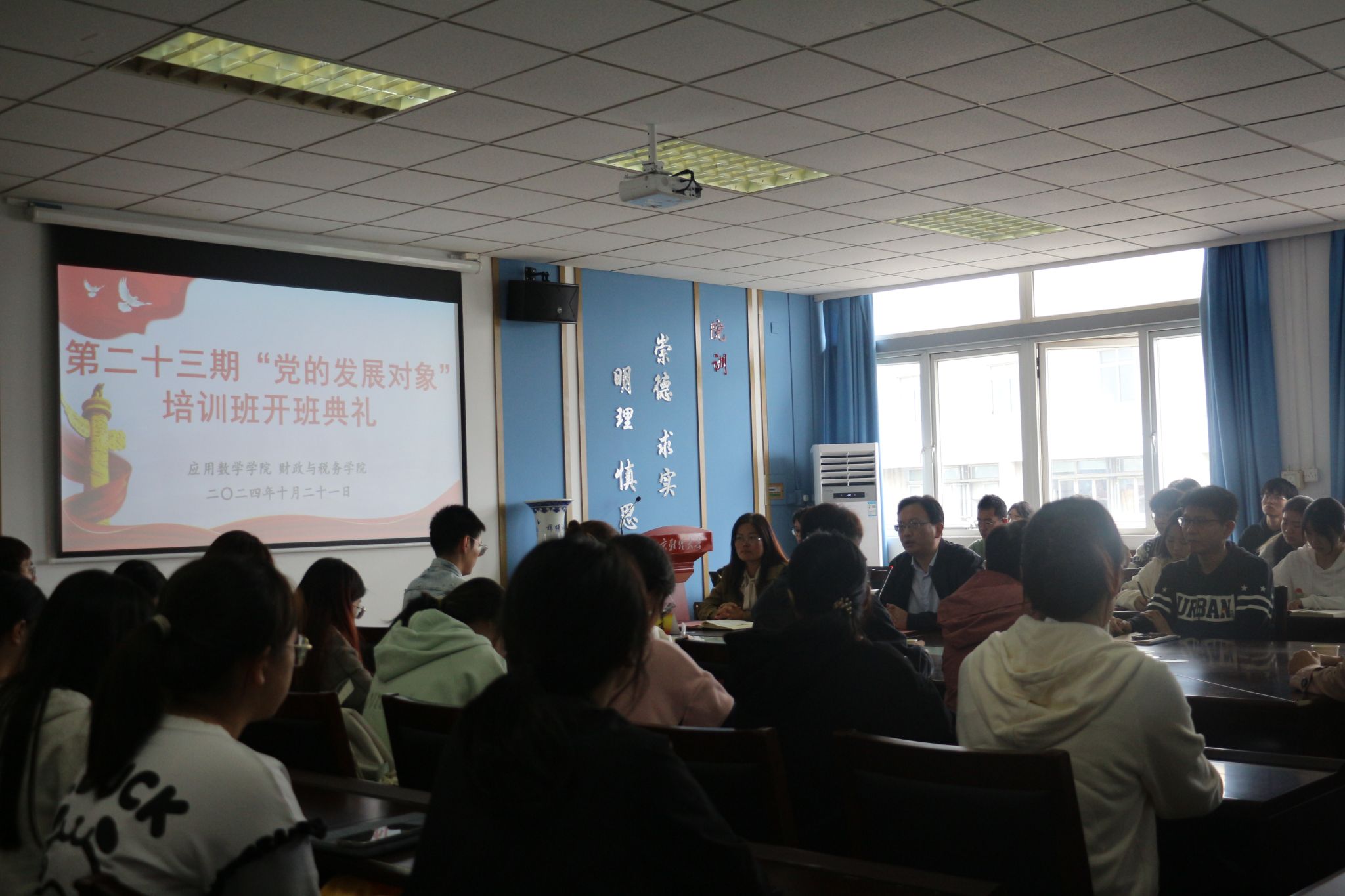 10月21日中午,公司和财政与税务公司联合开展的2024-2025学年第一学期“党的发展对象”培训班开班典礼在德业楼508会议室举行。公司“五老”讲师团成员、教授胡连生,公司党委书记殷建新、党委副书记孙晓飞,财政与税务公司党委副书记王翔及全体培训班学员参加了开班典礼。开班典礼由公司党委书记殷建新主持。