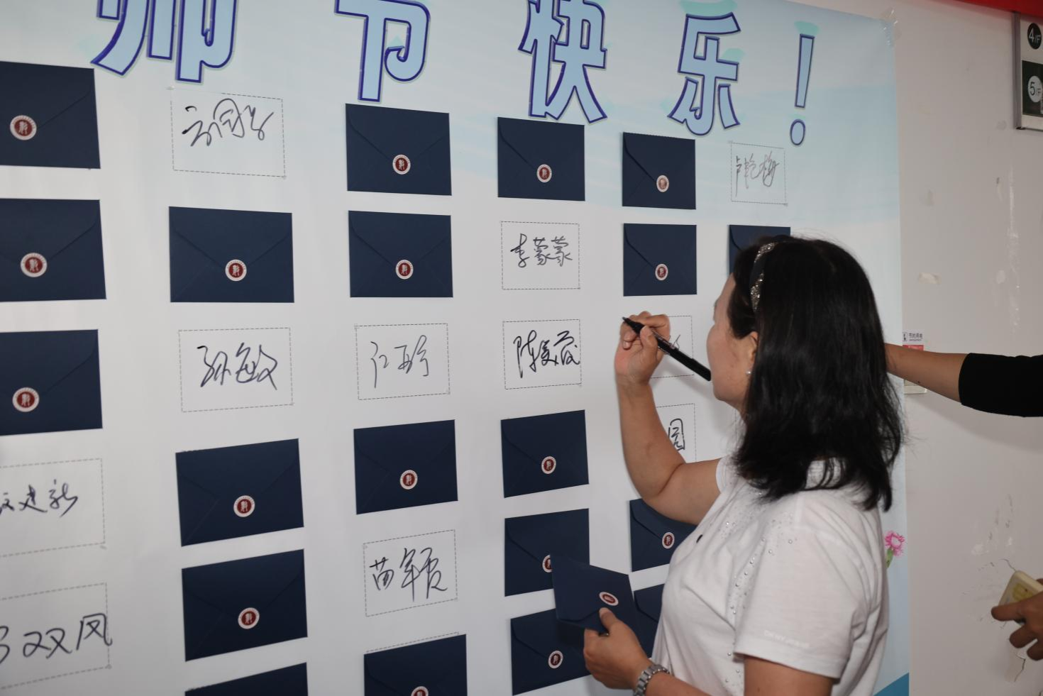 温馨互动环节将氛围推向高潮。同学们手捧精心准备的向日葵,向老师们献上最诚挚的节日祝福;公司为每位教师送上定制的贴心礼品;别出心裁的“盲盒信封”里,一封封手写的敬意与感谢,让老师们笑意盈盈、倍感温暖。