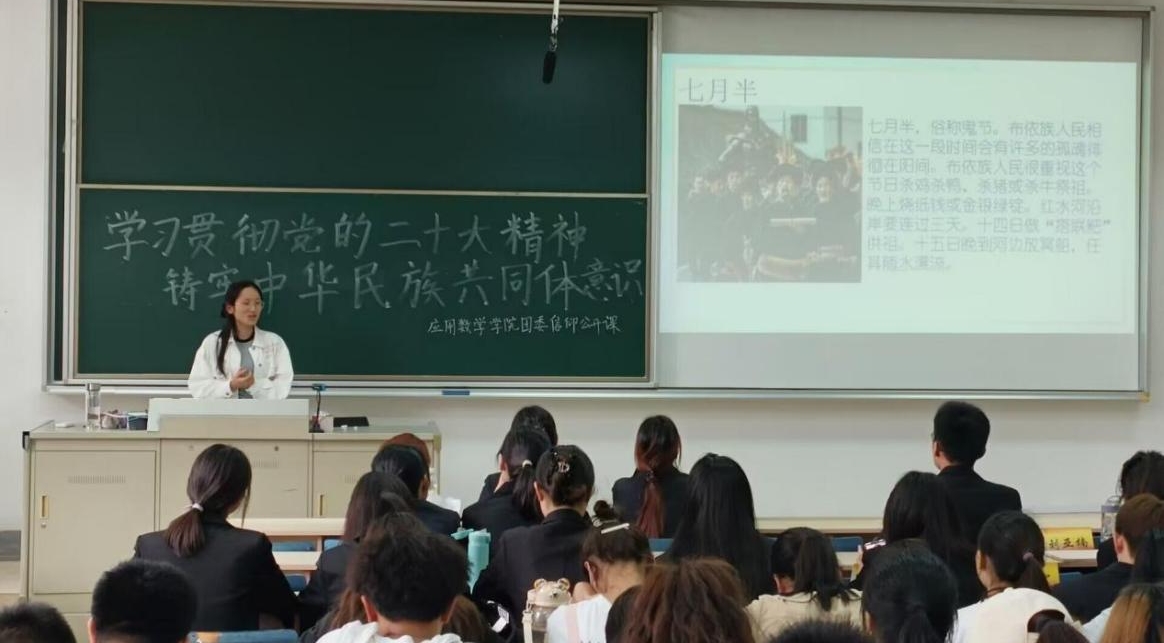 李攻明老师带领同学们共同学习了习近平总书记关于铸牢中华民族共同体意识的部分重要论述,号召全体同学要增强文化认同,牢固树立正确的祖国观、民族观、文化观、历史观,为构筑中华民族共有精神家园贡献力量。公司“红石榴班”代表卢德敏同学受邀向同学们介绍了布依族的分布地区、特色手工服装、传统节日以及民族饮食,诚挚地邀请同学们去她的家乡做客。院团委各部门同学代表分享了自己的学习感悟和体会,纷纷表示要从自身做起,以社会主义核心价值观为指引,铸牢中华民族共同体意识,为推动民族团结进步贡献力量。
