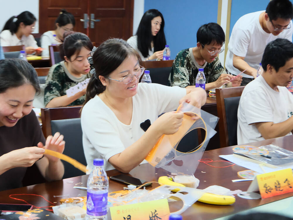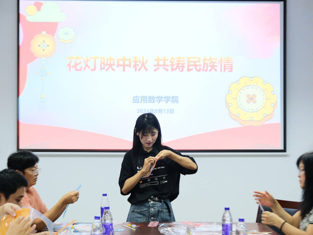 接着,主办方向在场的师生们发放了手工道具,并带领大家自制中秋花灯。老师和同学们有人低头专注地拼接花灯,手指灵活翻飞,灵巧地搭建出花灯的骨架;有人则细心地给花灯穿线,便有一盏盏精美的花灯映入眼帘。师生们纷纷兴奋地手持精美的花灯合影,表达对即将到来的中秋佳节的美好祝福。