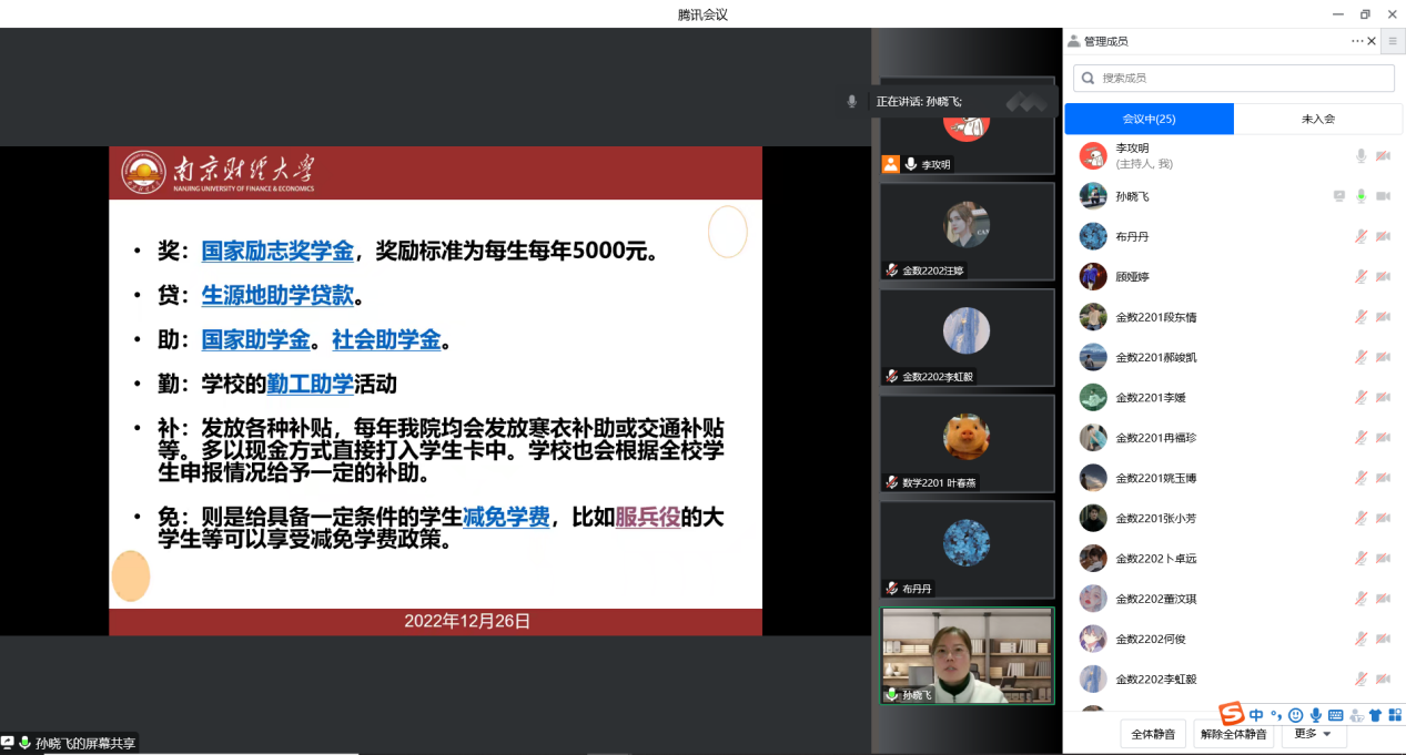 为进一步宣传国家和公司的资助政策,了解家庭经济困难员工的实际生活情况,加强家校联系,充分发挥资助育人功效,1月2日晚,公司通过线上方式开展以“云端家访共筑梦,家校合力助成长”为主题的寒假云家访活动。公司党总支副书记布丹丹、学工办主任孙晓飞、辅导员李攻明和公司2022级全体家庭经济困难员工及家长代表参加了活动。