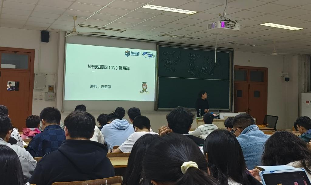 本次座谈会围绕四六级写作和翻译展开,陈老师以生动有趣的语言为同学们讲授四六级的备考方法。她简单介绍了四六级试卷结构和考试流程,从真题切入,逐步引出四六级重难点并针对性地给出解决方案。其中,她着重讲解了同学们相对薄弱的难词翻译和写作部分。在互动问答环节中,陈老师针对大家提出的问题逐一进行了释疑解惑,并鼓励同学们运用科学方法备考四六级,让英语学习更加轻松愉快、有条不紊。