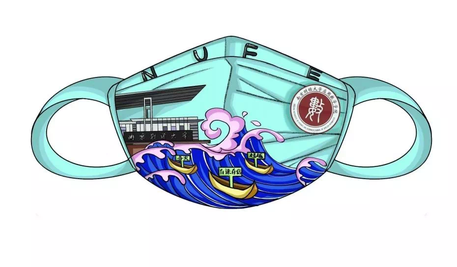 公司学长姐们发挥自己的创意,大显身手,设计出了一款以蓝色为主色调的口罩,呼吁大家提高疫情防控意识,随时佩戴口罩。湛蓝的天空之下,财大校门前,翻涌的海浪中,昭示着“务实、超越、自谦、自信”的帆船正在远航,画面里跳动的蓝色,好似能包容所有的烦恼和沮丧,给你自信与希望。云顶国际yd222线路检测中心的院徽,悬于空中,似初生的太阳,光而不耀,绚丽多彩,深深地镌刻进每一位数院人的灵魂。