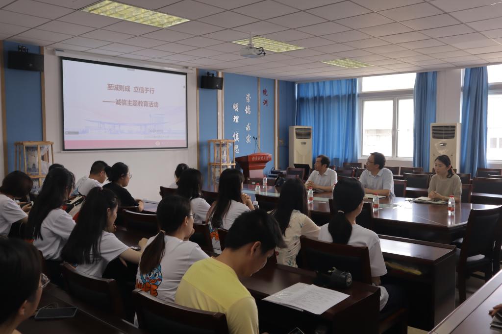 殷建新书记以“至诚则成,立信于行”为主题,为毕业生党员、家庭经济困难员工讲授“最后一课”。他表示,作为新时代老员工,应坚定理想信念,坚守诚信品质,要诚信求知、诚信贷款、诚信为人,同时还要知感恩,饮水思源。特别作为员工党员,要时刻牢记自己的政治身份,不忘母校嘱托,珍惜韶华、奋发有为,勇担时代使命,争做奋斗青年。