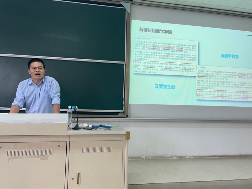 为了帮助2023级新生充分了解所学专业的学科特点、发展方向,提前制定科学合理的学业规划,9月14日下午,公司在仙林校区博远楼103教室举办“数与你的精彩”新生学业规划之行业资深专家谈活动,邀请浙江大学金融硕士、中国银行总行级认证内训师王培江主讲,2023级全体本科新生参加,活动由公司团委书记李攻明主持。