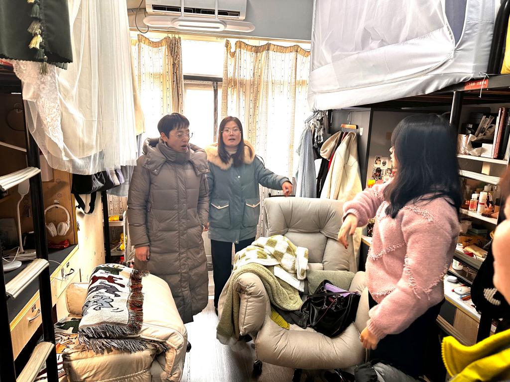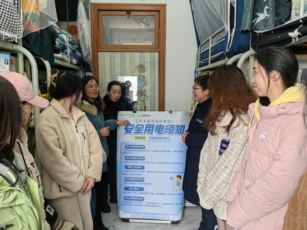 大检查由用电排查、用电知识普及和消防检查三个部分组成。检查过程中,院领导和老师走访宿舍,与同学们亲切交流,对每个寝室进行了仔细的安全检查,对违规电器的使用进行了排查,并对离寝关电源的重要性以及插座开关的规范操作进行了强调。孙晓飞副书记与宿管阿姨一起向同学们宣传普及了安全用电须知。同时,各位老师对宿舍楼消防设施进行了重点检查,针对寝室楼道杂物堆放的情况,殷书记讲道:“在校园内,每一起火灾事故都可能带来不可挽回的损失,要合理运用空间,不留一点安全隐患。”许多同学表示,通过此次消防检查,结合老师们给出的宿舍安全改进建议,他们对于如何预防火灾和应对紧急情况有了更深刻的理解,同时也会更加规范日常用电,及时清理寝室过道,为了自己及他人的安全做出改变。