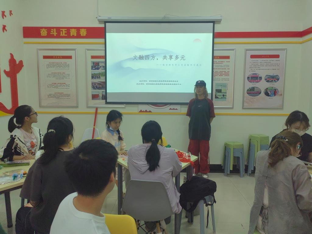 地方特色手工艺品,作为各地独特文化的载体,承载着深厚的历史底蕴和人文情感。它们不仅代表了当地人民的智慧和技艺,更成为了连接过去与现在、传统与创新的桥梁。本次活动以文化交流与实践体验为主旨,分为地方特色手工艺品文化宣传、自主制作和交流展示三个环节。活动中展示了不同地域的代表性手工艺品,并介绍了它们的起源、制作过程及蕴含意义。同学们分别挑选了自己感兴趣的手工艺品进行制作:傲然绽开的纸艺玫瑰、钩织紧密的中国结、针针细致的精美刺绣、形象生动的简易灯笼、充满巧思的石头画与扭扭棒,每一件作品都融入了同学们的特色创作技巧和表现形式。制作完成后,同学们互相分享了他们作品的想法和灵感以及想要通过作品表现的意义与价值。最后,同学们的作品在公司首届社区文化节开幕式上进行了展示,受到了现场同学的一致好评与喜爱。