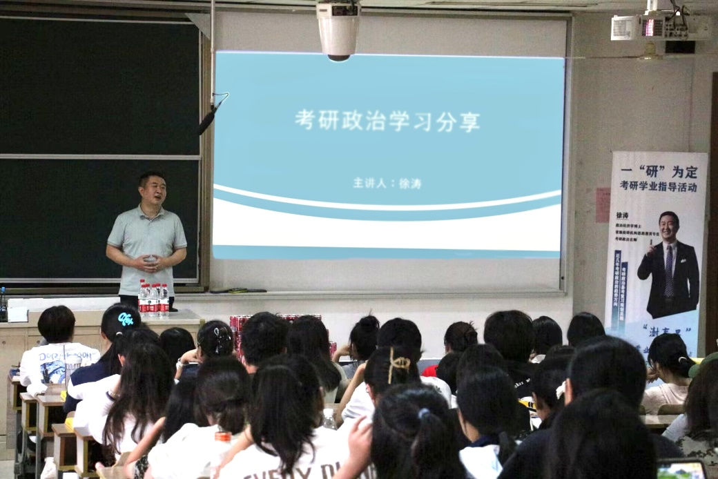 为助力考研学子逐梦成功,帮助同学们掌握考研方法和技巧,坚定考研决心,增强考研信心,进一步做好公司的考研指导工作,9月10日下午,公司在仙林校区博远楼103教室开展“‘澍育星’学业帮扶行动之一‘研’为定”考研学业指导活动。本次活动由考研政治名师徐涛老师主讲,公司部分员工参加。