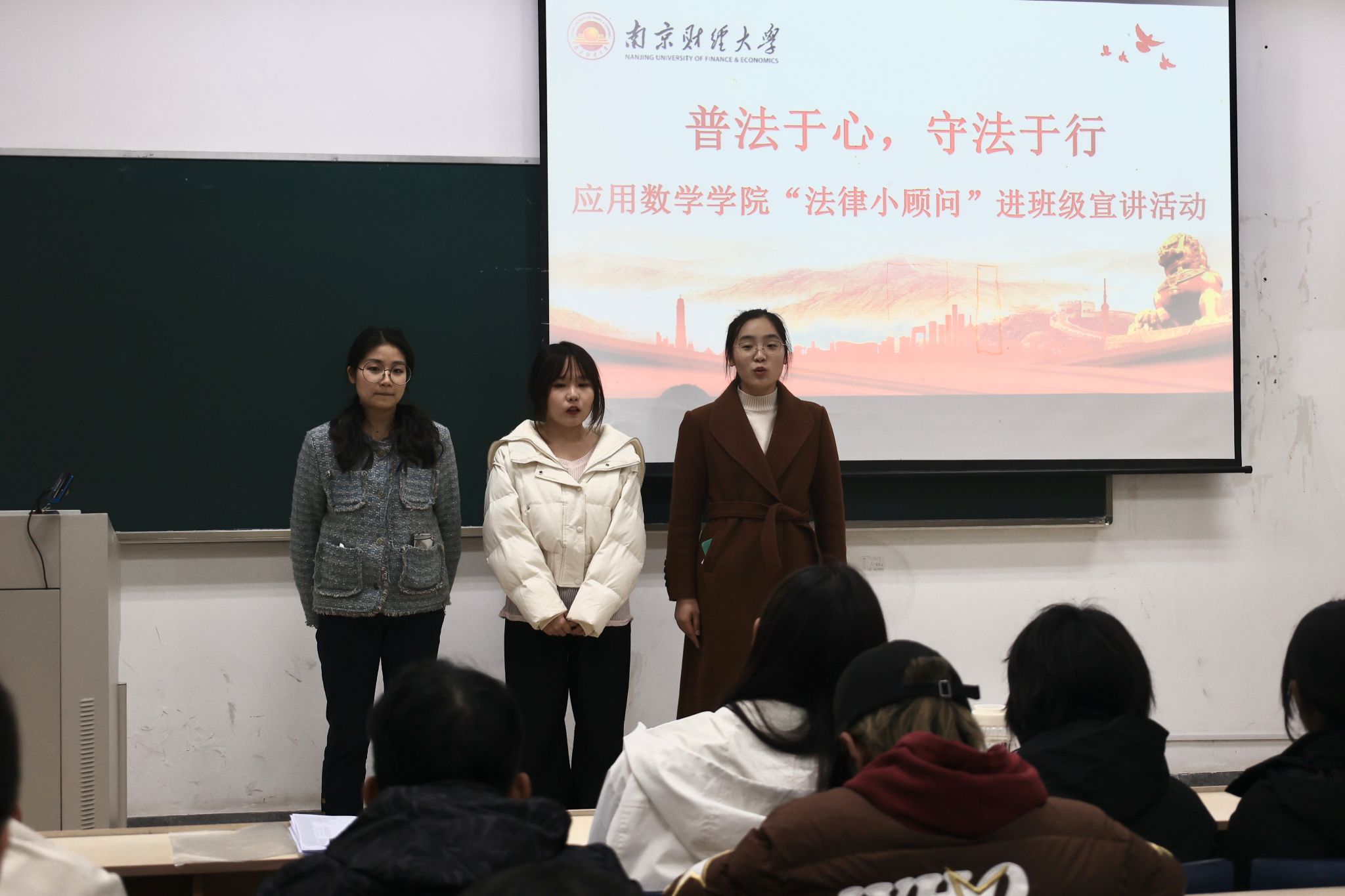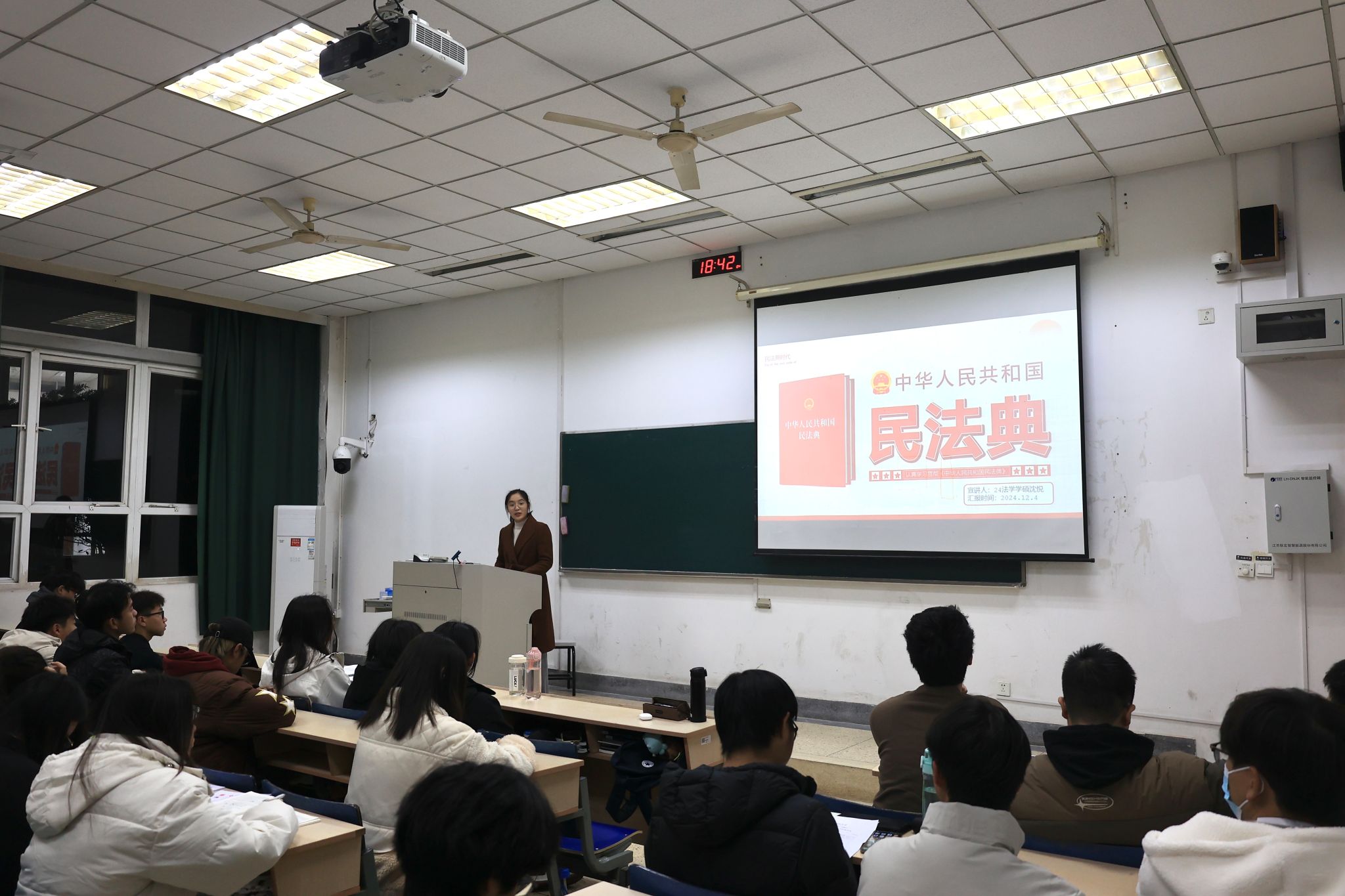 在“宪法宣讲”环节,公司聘请法公司研究生作为公司“法律小顾问”,进班级开展“普法于心 守法于行”普法宣讲活动。三位小顾问围绕习近平法治思想、宪法和民法典,进行了深入浅出的普法宣讲,进一步强化了同学们的法治观念,提升了他们运用法律武器维护自身权益的能力。