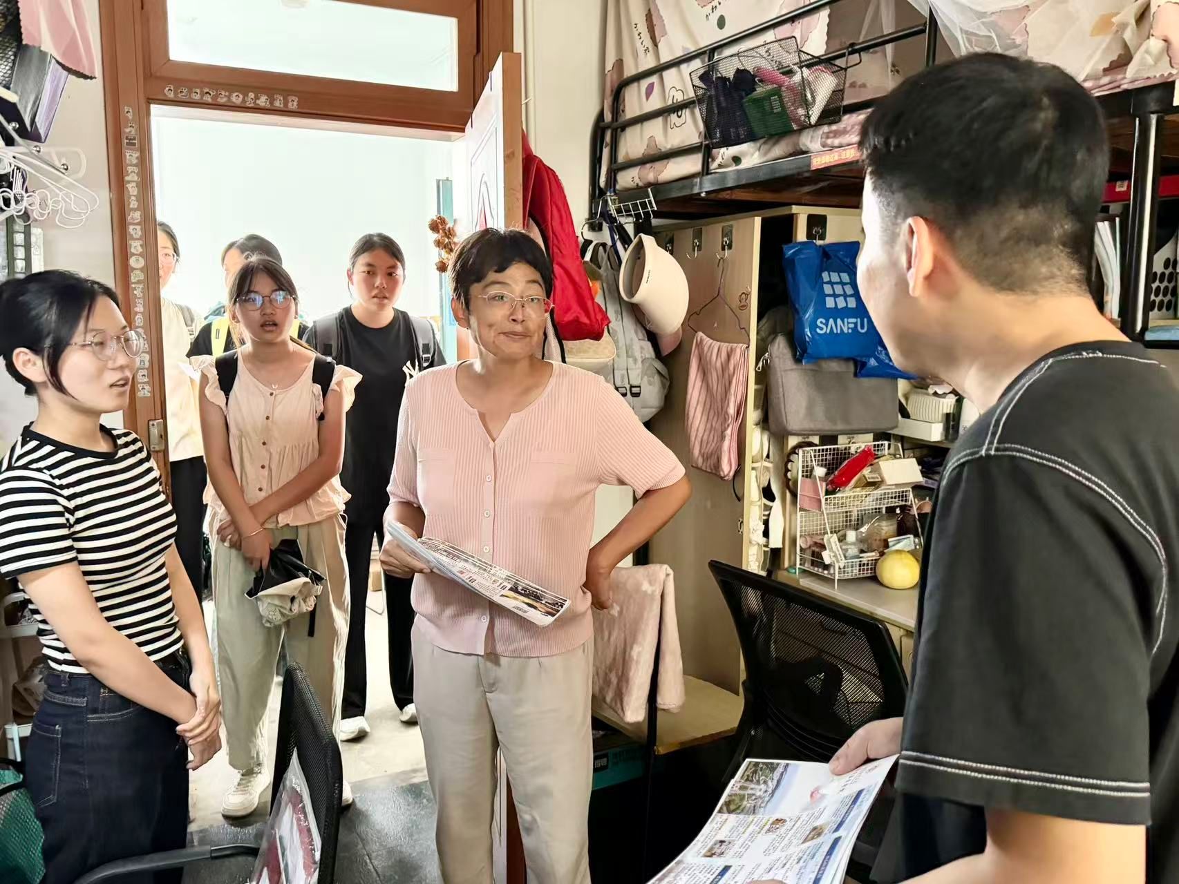 为提升安全教育实效,检查小组以小寝为单位分发消防与网络安全宣传折页。折页内容聚焦实用要点,涵盖消防、人身、财产安全,应急逃生、反诈宣传等核心要点,以图文形式助力员工快速掌握关键技能。同学们纷纷表示,“检查+宣传”的形式实用性强,既排除了隐患,也增强了防范意识,今后将自觉规范用电、维护环境卫生,共同营造安全有序的居住环境。