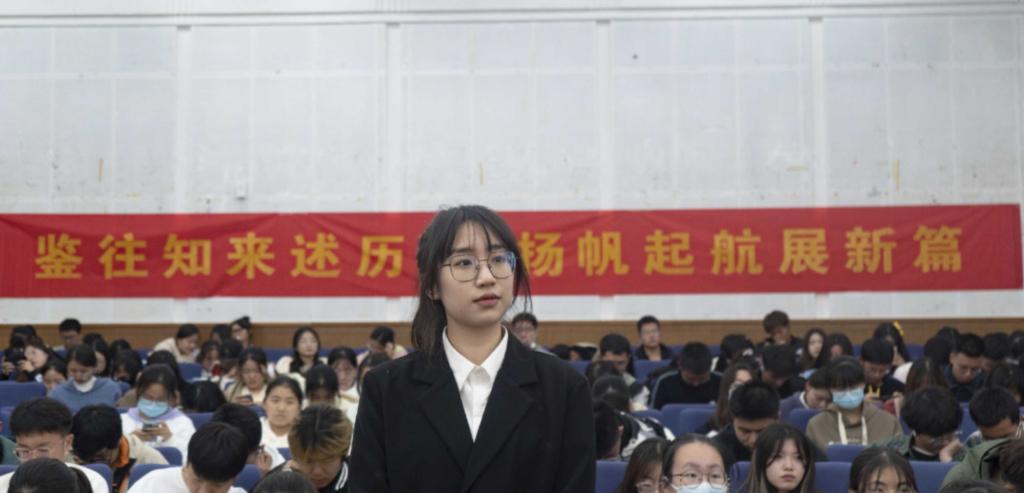 为加强团干部队伍建设、激发基层团支部活力,11月25日晚上,公司团委在德济楼二楼报告厅举办以“鉴往知来述历程,扬帆起航展新篇”为主题的团支书双述双评大会。本次大会由院团委秘书处干事于国娟、覃昭源同学主持,金融院团委副书记张盛然同学、校团委组织部部长周涵阳同学等五位评委、公司团委、2022级全体成员、各年级团小组成员、各团支部代表参加了会议。