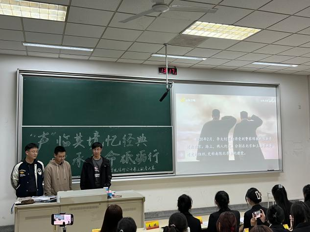孙晓飞老师致开场辞,她对以配音这种新颖的方式举办信仰公开课表示支持,希望同学们能拿出精气神来配好每一段配音、声情并茂地配好每一句台词,并能从中学习和感悟先烈们的革命精神。随着院团委宣传部的杨一凡同学对百年前陈延年同志的倾情演绎,配音大赛正式拉开序幕。他用低沉的声音道出陈延年同志的抱负,一句“我愿意为了这个国家和民众而献身,义无反顾”让人身临其境、热血沸腾。青志部三位同学对《觉醒年代》中南陈北李相约建党片段进行真诚演绎,带领同学们感受革命先贤陈独秀、李大钊远大的思想抱负。在秘书处、学术部、社会实践部同学们的演绎下,《建国大业》中的女性用自己的力量拯救国家,酣畅淋漓地展现奋斗道路上女性的力量;井冈山会师时的“星星之火可以燎原”的激动时刻,让人为之心潮澎湃;周恩来和毛泽东在面临从零开始时,莫灰心的精神展现得淋漓尽致。经过激烈的评选,宣传部杨一凡、张雯俊、赵子然同学演绎的作品《觉醒年代》获得一等奖。