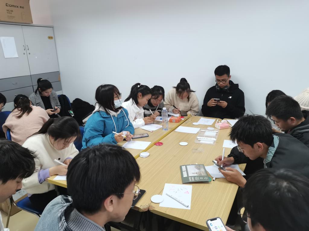 活动中,每个寝室派出代表挑选出他们心仪的空白徽章。之后,寝室成员一起构思最能体现集体心声的图案。他们不停地交流、细细地斟酌,然后在纸上慢慢地描画。在反复多次的修改后,他们将成品临摹到之前选定好的空白徽章上。一枚枚代表寝室形象的徽章终于诞生。接着,各寝室代表分享他们的寝室徽章所蕴含的意义,有的是今后奋斗的目标,有的是生活经历的抽象,有的是共同喜爱的形象,有的是温馨的小提醒……每个作品在大家的相互分享中赋予了更多的意义,同学间也有了更进一步的了解。寝室徽章的设计,不仅增强了宿舍成员间的凝聚力,为宿舍增添了文化气息,更为营造 “和谐、感恩、文明”的校园文化氛围贡献了一份力。活动结束后,大家合影留念,相信这次活动对每个参加人员来说都是一段美好的回忆。