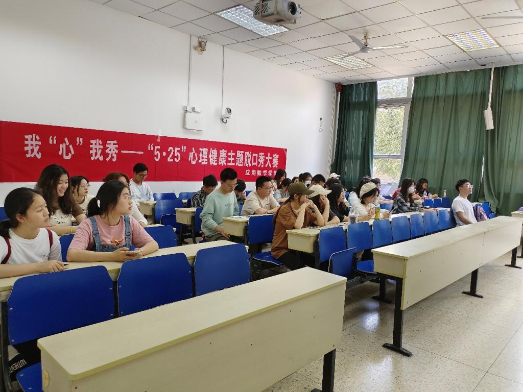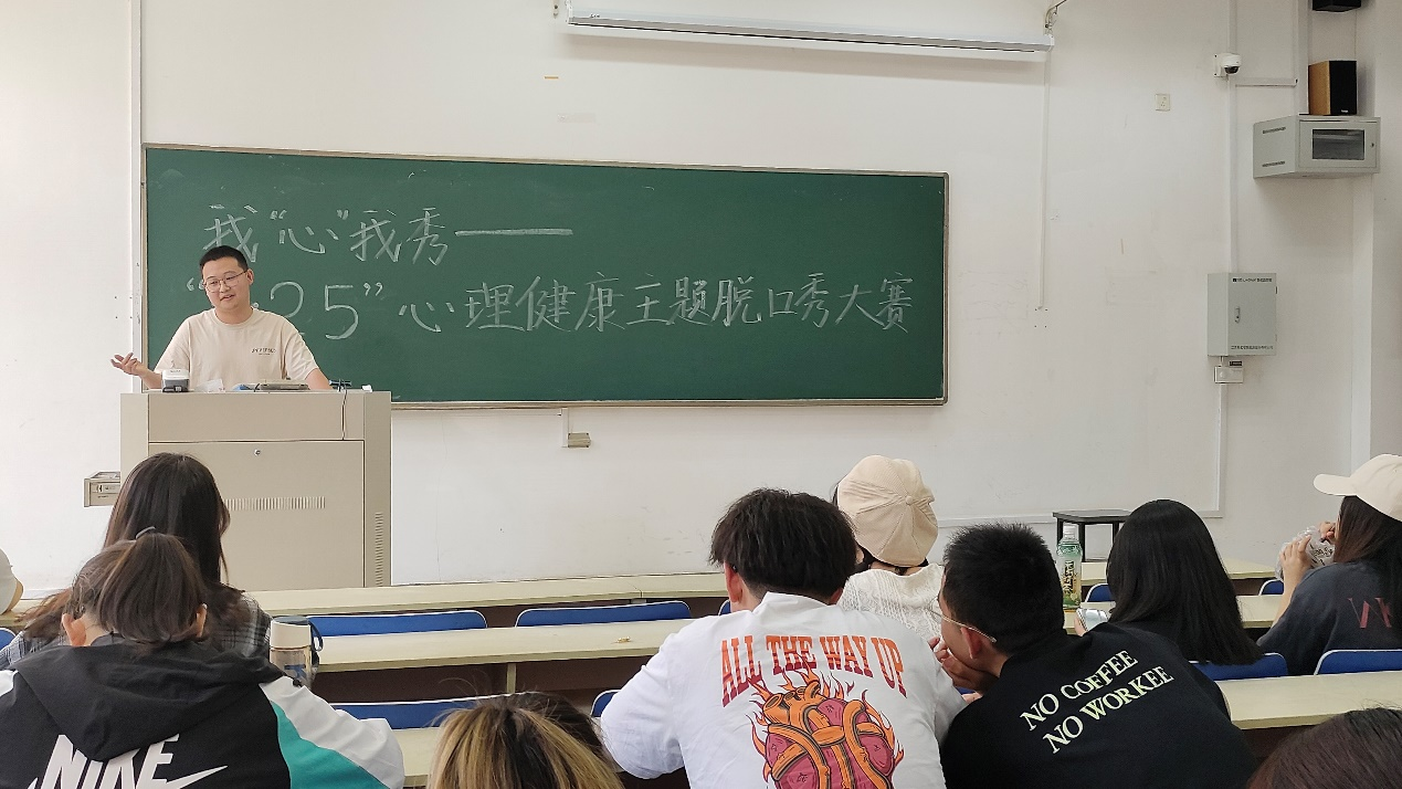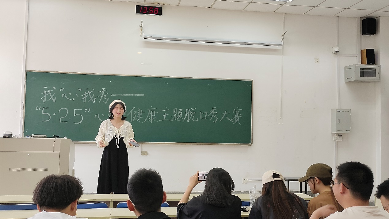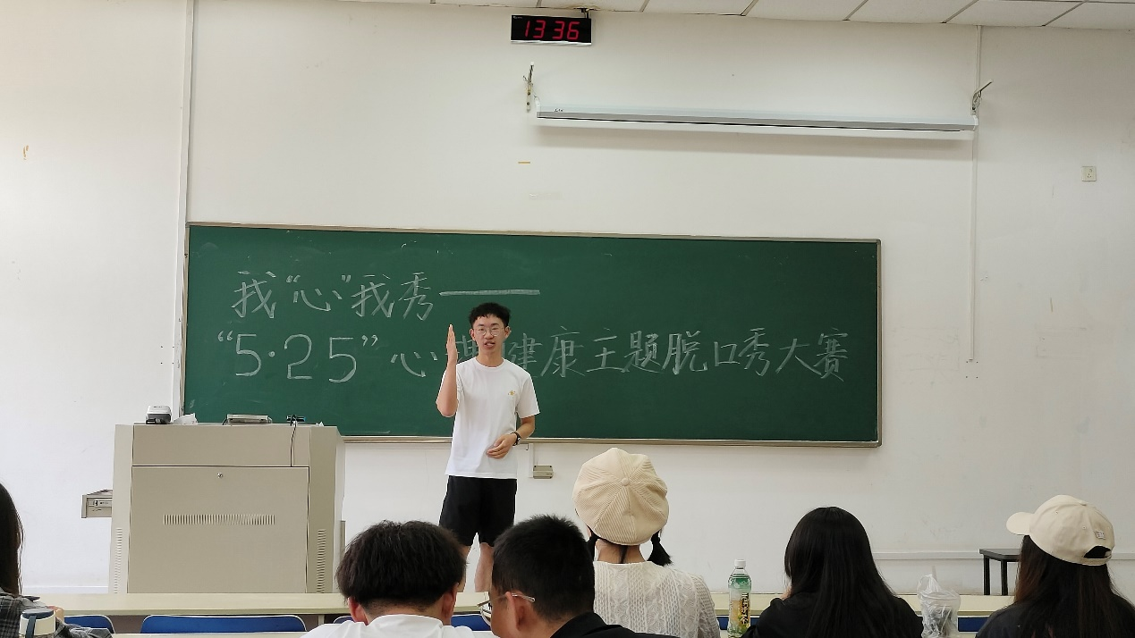 为迎接“5·25”老员工心理健康节,提高老员工对心理健康的重视,普及心理健康知识,引导老员工“珍惜生命、关爱自己”,5月14日下午,公司在仙林校区德业楼104教室举办我“心”我秀——“5·25”心理健康主题脱口秀大赛,经过前期的层层选拔,全校共8名选手进入最后的决赛。