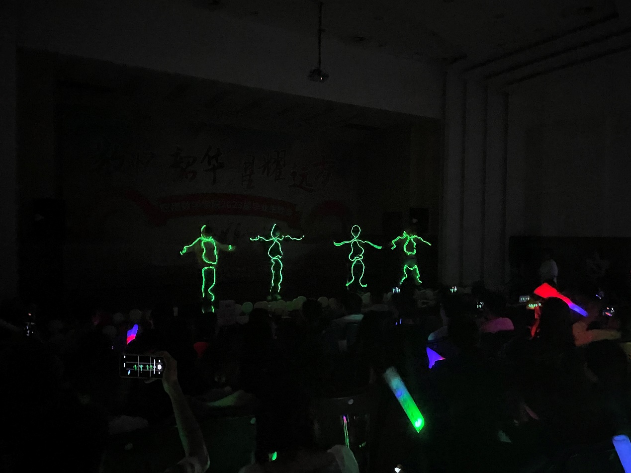 晚会分为“数”青春·乘风破浪新起点、“数”往昔·谱写华章展风采、“数”辉煌·接续奋斗向未来三个篇章。由大河马乐队带来的开场歌曲《都选C》瞬间点燃了现场观众们的热情;惠梓磊、段东情、陈泽培、黄歆然4位同学带来的诗朗诵《启航》演绎了奋斗的青春是最美的青春,既然选择出发,便只顾风雨兼程;寒武纪社团带来的舞蹈《love me like this》赢得了现场观众的阵阵喝彩和掌声;刘志伟和于国娟同学演唱的歌曲《我们的明天+pray for you》为即将毕业的同学送上了诚挚的祝福;易诚博等 5 名同学带来的荧光舞《Dancing in the dark》用轻快的乐曲和诙谐的动作活跃了现场气氛。动漫社表演的舞蹈《响喜乱舞》和大四、大二同学一起带来的舞蹈《Forever Young》动作优美,让人赏心悦目;李畅、朱彦峰、翟祺盛、武雨欣4位同学带来的歌曲《七里香》向我们展示了青春无悔,砥砺前行,归来仍是少年;相声社带来的《相声新时代》一次次逗笑了全场,点燃了观众们的激情;张伟业等9名同学带来的幕布表演《我们的大学》通过相识、相知再到不舍离别完整展现了大学四年生活。毕业班辅导员卢艳梅老师和徐鸿等17名同学为大家带来了回忆满满的情景剧《Say嗨,Say拜》,用贴近生活的表演诠释了老员工活的美好与难忘;盛林雪老师和3名同学共同演唱的《永不失联的爱》,表达了即将毕业的同学永不失联,珍重纪念;张小芳等12名同学带来的手势舞《记念》,唤起了同学们对四年老员工活的种种回忆。晚会在合唱《追梦赤子心+生来倔强》中落下帷幕。公司领导、辅导员和教师代表纷纷送上视频祝福,祝愿2023届毕业生前途似锦、一路辉煌。同时,晚会现场还穿插了抽奖环节,让大家可以一边欣赏精彩的表演,一边参与活动互动。